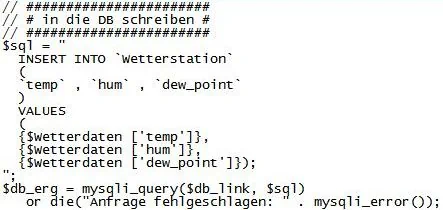 Dort erfolgt der Eintrag der Messwerte in die bereits beschriebene MySQL Datenbank.