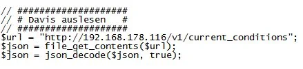 Jetzt erfolgt die eigentliche Abfrage der Wetterstation nach der oben beschriebenen Prozedur. Direkt im Anschluss werden die Daten aus dem JSON-String geholt.