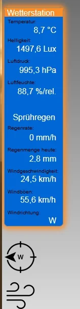 Die Darstellung in Tabellen und Diagrammform vermitteln zwar einen präzisen Eindruck über die aktuelle Wetterlage bzw. deren Verlauf. Häufig kann aber eine visuelle Information viel besser verstanden werden als zahlreiche Messwerte.