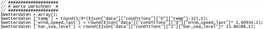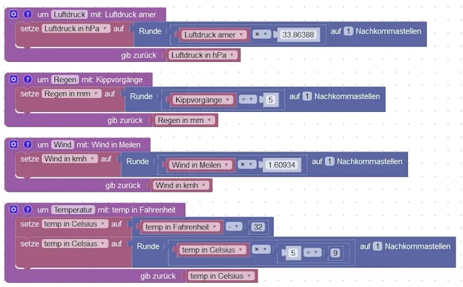 Da die Wetterstation amerikanische Grundeinheiten verwendet müssen wir einige Messwerte konvertieren.
