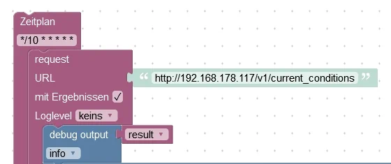 Der Trigger startet das Skript alle 10 Sekunden und sendet damit die Anfrage an die Wetterstation: