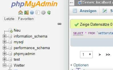 3.) Die Wetter-Messwerte aus der Datenbank abfragen