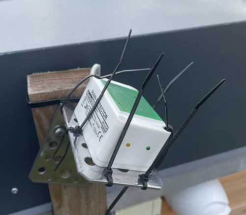 Die Kabelbinder sollen verhindern, dass sich Vögel auf den Sensor setzen.