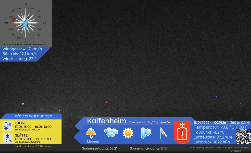 Info: Die Aufnahmerichtung schwenkt einmal pro Stunde über den Ortskern hin und her.